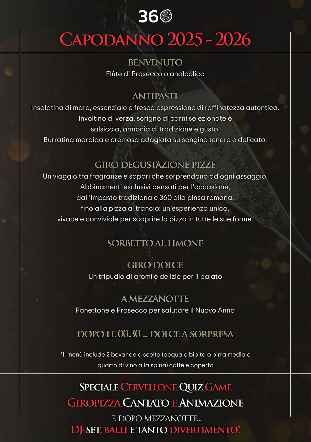 in attesa del saldo goditi un'anteprima di quella che sarà la tua magnifica esperienza del Capodanno alla Pizzeria 360: